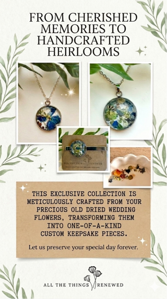 We are all on our own paths…..yet all together on this grand journey. I wanted to create a space of meaning and connection with my pieces. Each of my designs are made with real flowers that all represent a certain energy and significance. What you get is not only an authentic tangible piece, but also a meaningful and symbolic sentiment. I have organized all of my designs into Series. Each series features a certain flower and its symbolic meaning.
