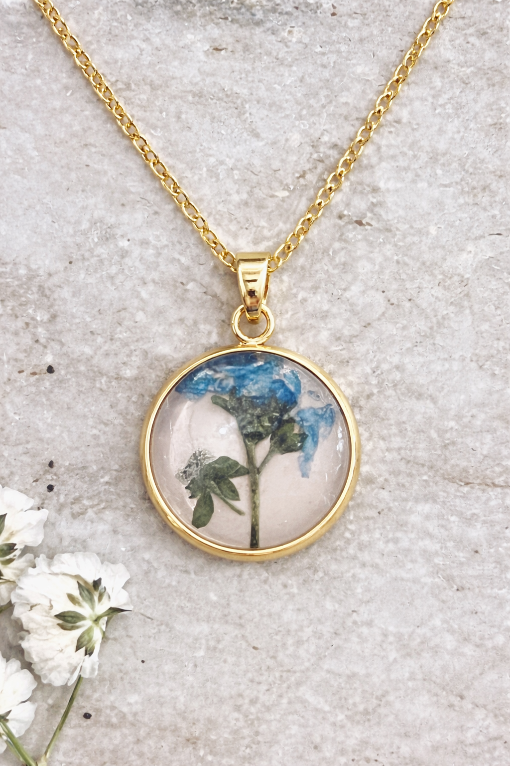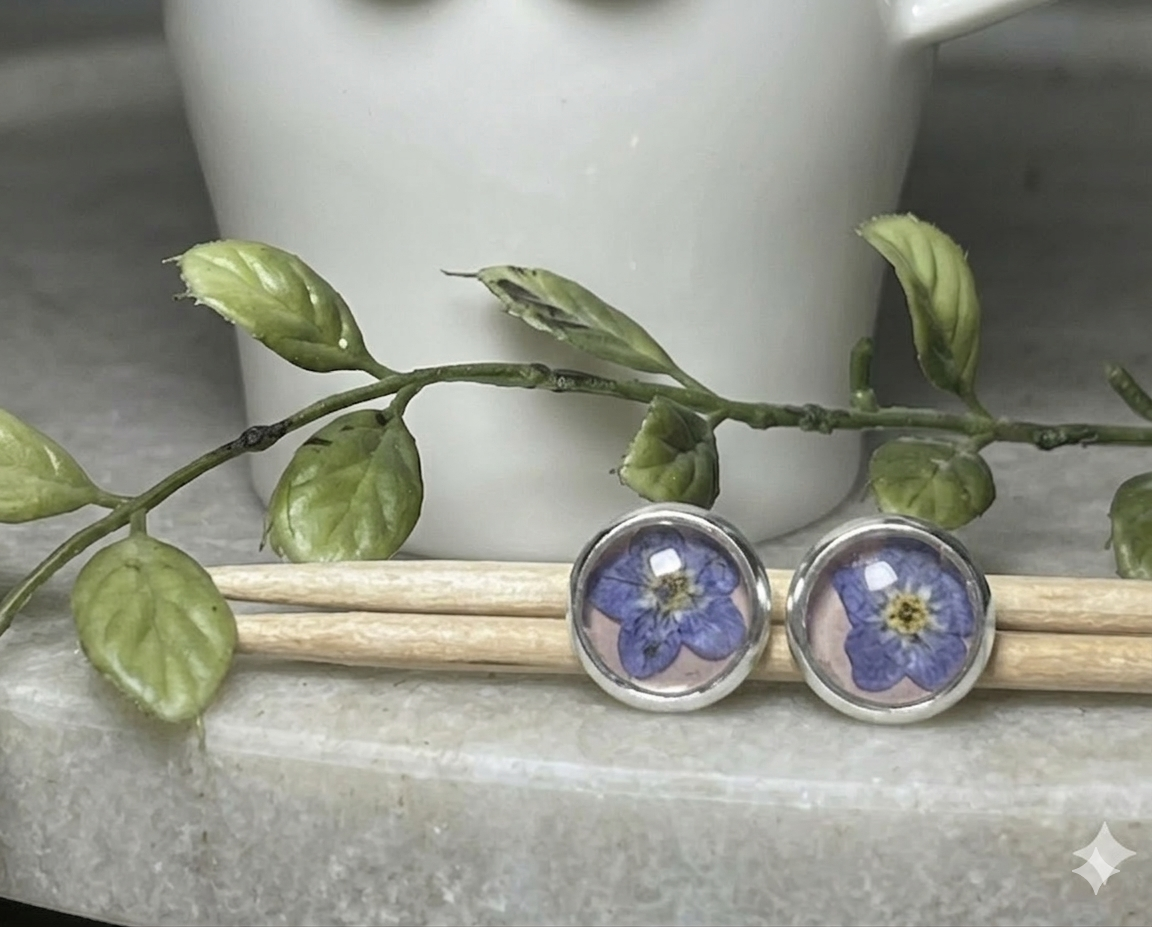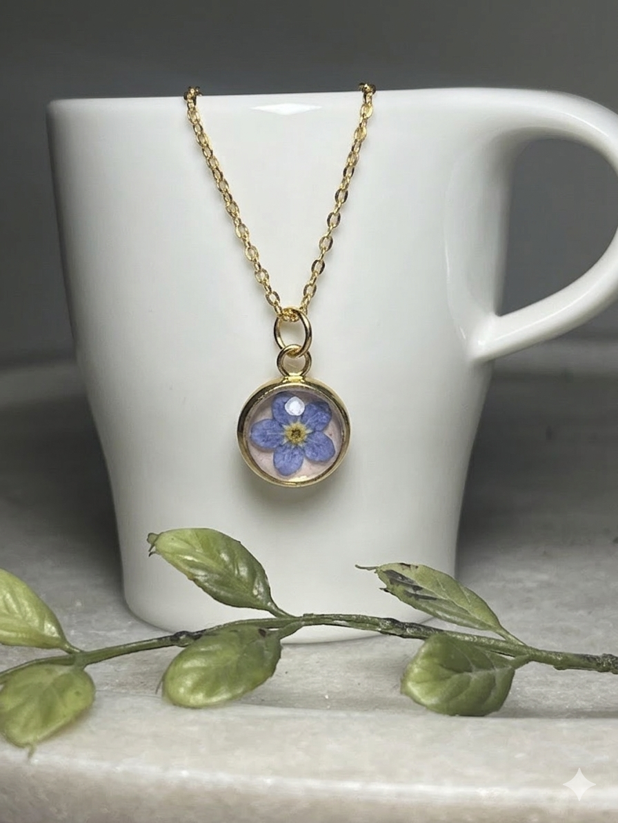 Forget me not bloom pressed on a blush background.
