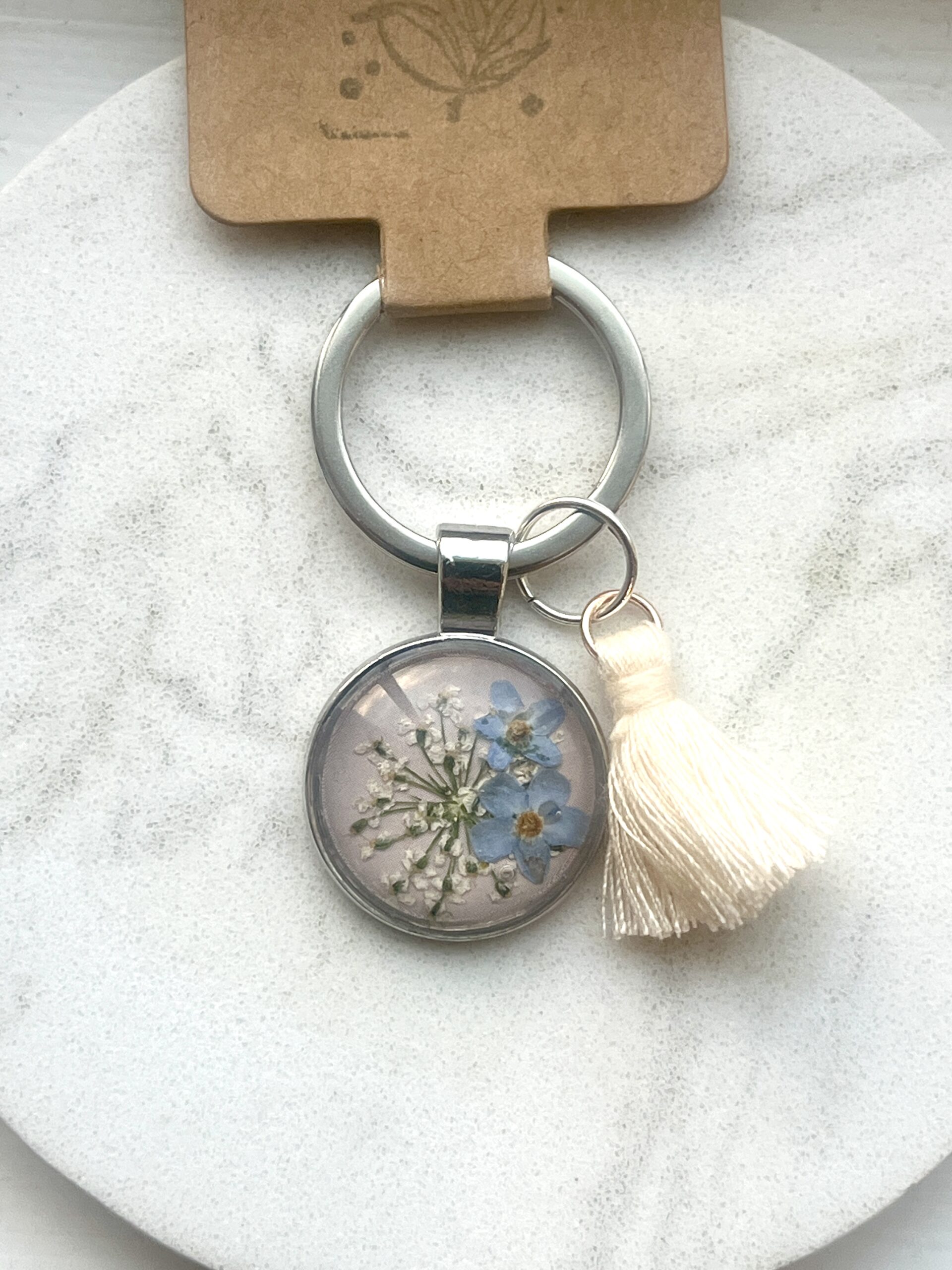 Queen Anne’s Lace and white bloom with Forget Me Not blooms on a chosen colored background.